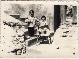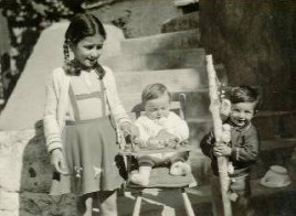 Η αδερφή μου Αγγελική στο καρότσι, εγώ με τη λαμπάδα και η φίλη μας Γιάννα |